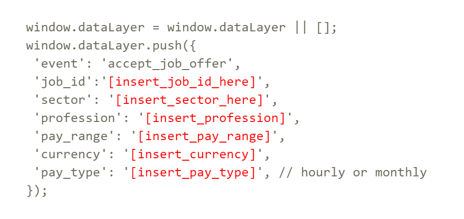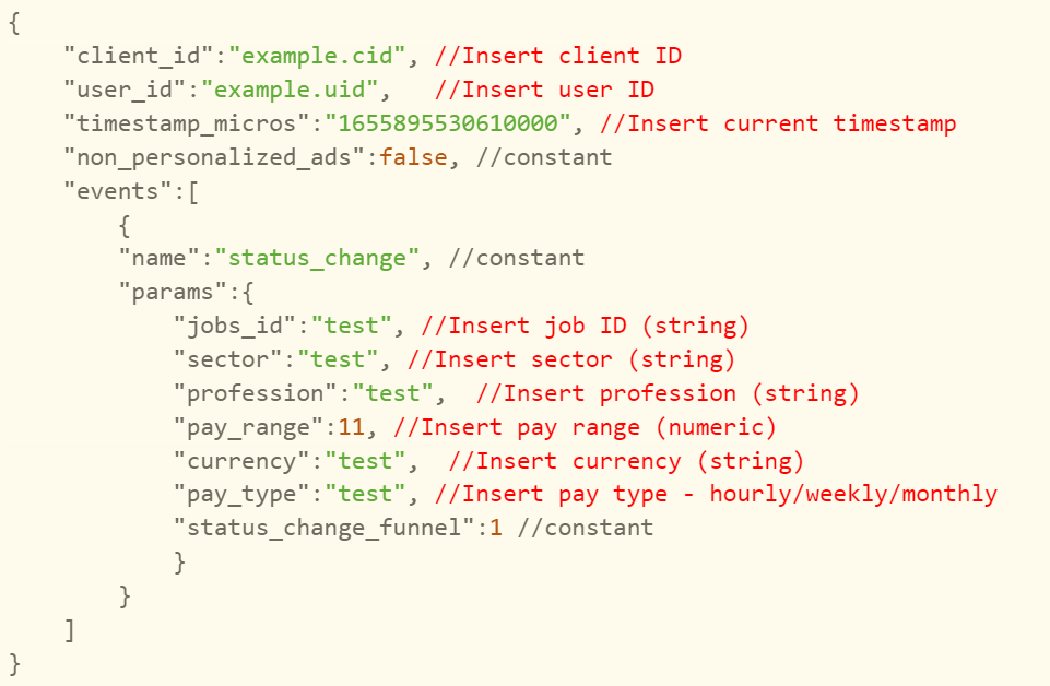 With measurement protocol, the idea was to track the status_change event. The event represented the actual agreement between the candidate and the recruiter and was a final conversion.
